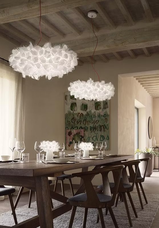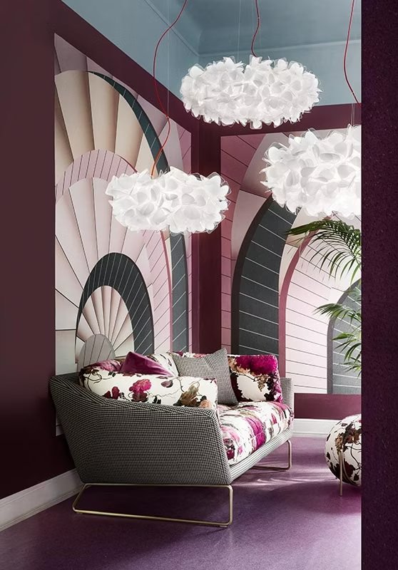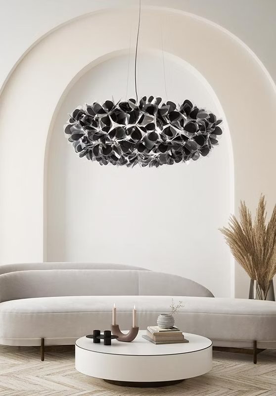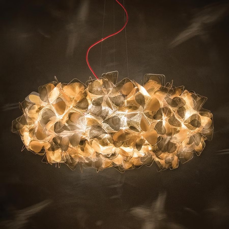 Hand-folded through an interlocking system, Clizia is an ode to joy, femininity, primal love, and the purity of feelings. For its 10th anniversary, the delicate Mama Non Mama version in white is adorned with a precious gold and a trendy black. The gold finish is the result of incessant research of how to adhere double-sided gold leaf through cold application to Slamp’s tecnopolymers. The crackle texture makes each petal more resistant, casting plays of light and shadow throughout a space.