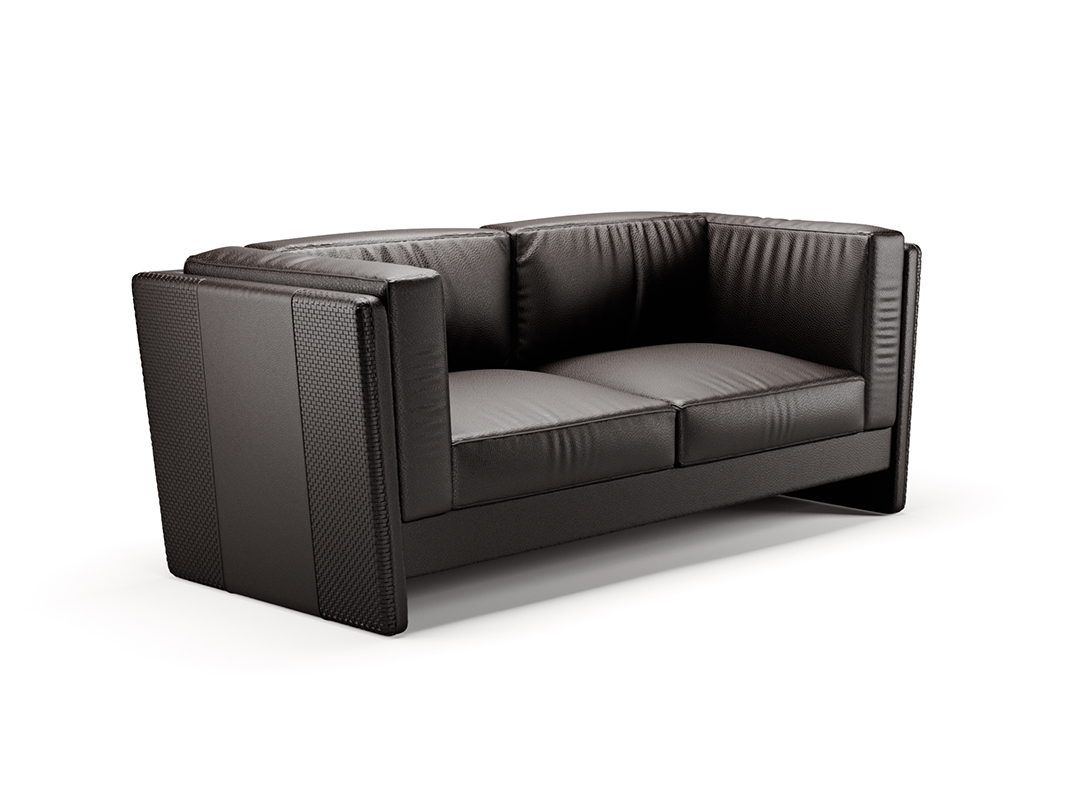 DIVANO IN PELLE CON DETTAGLI IN PELLE INTRECCIATA.