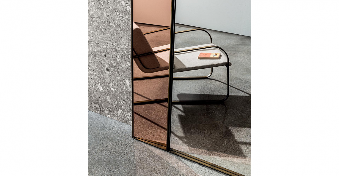 Campos è un nuovo concetto di specchiera. Combina una composizione grafica con diverse tonalità di specchio creando un elemento d’arredo che assume piena autonomia negli spazi architettonici, offrendo nuove prospettive di riflessione grazie allo specchio più piccolo inclinato.