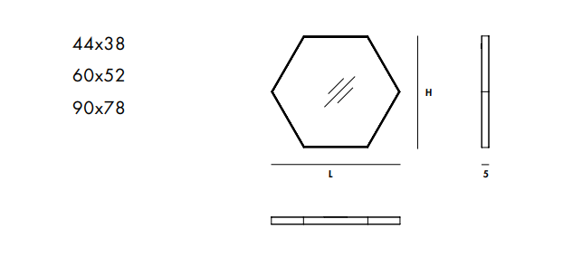Specchiere decagonali di grandi dimensioni con telaio in alluminio laccato nelle finiture ottone brunito, caffé o nero. Specchio centrale disponibile in varie tonalità.
