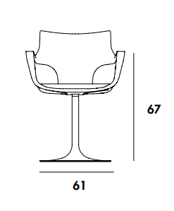 Sedia girevole con braccioli. Struttura in metallo cromato o laccato bianco o nero.