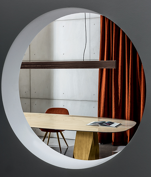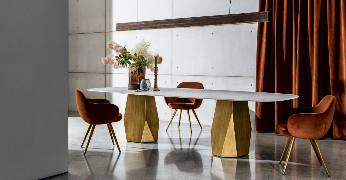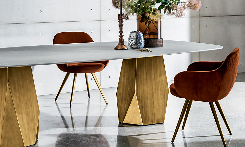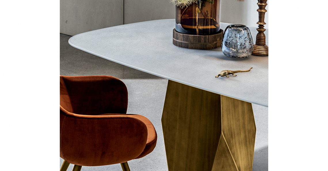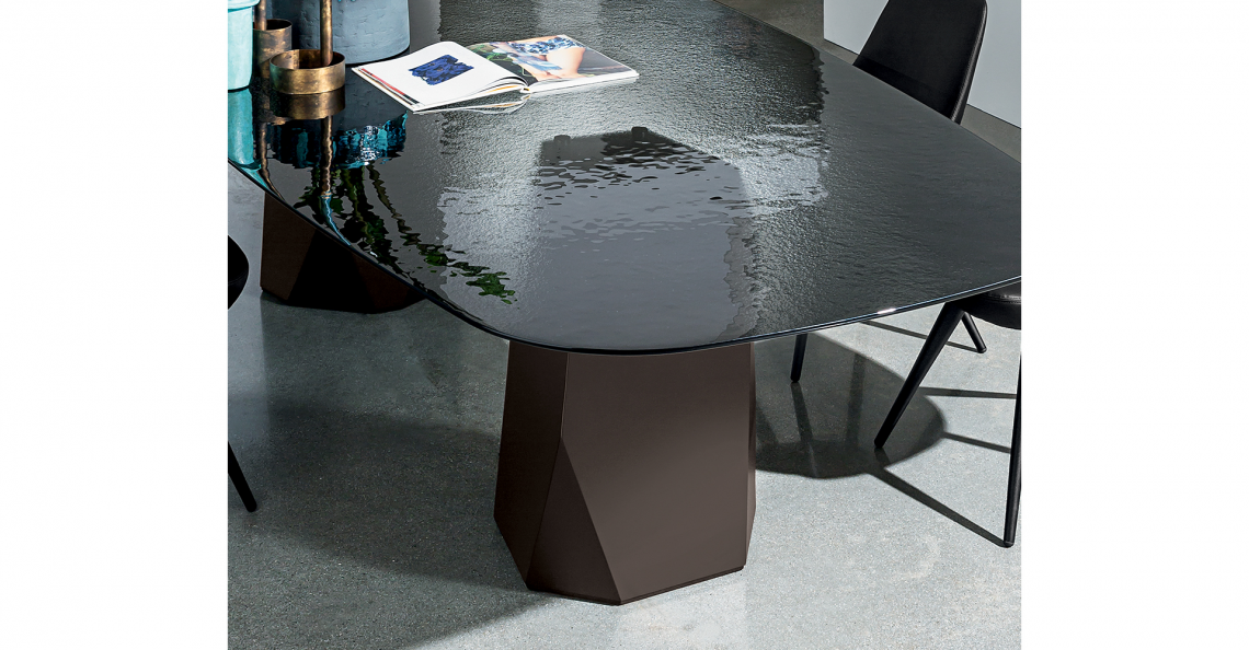 Tavolo con basi in metallo verniciato, disponibile in varie finiture. Top temperato o stratificato in varie misure, materiali e finiture.