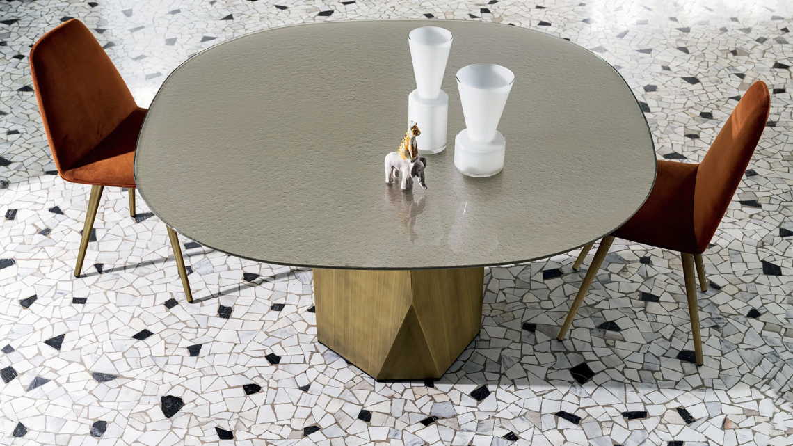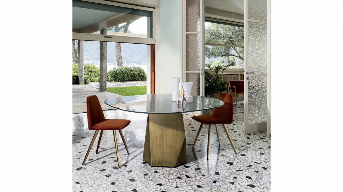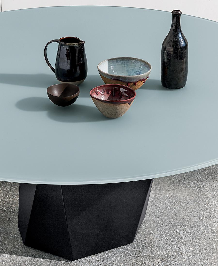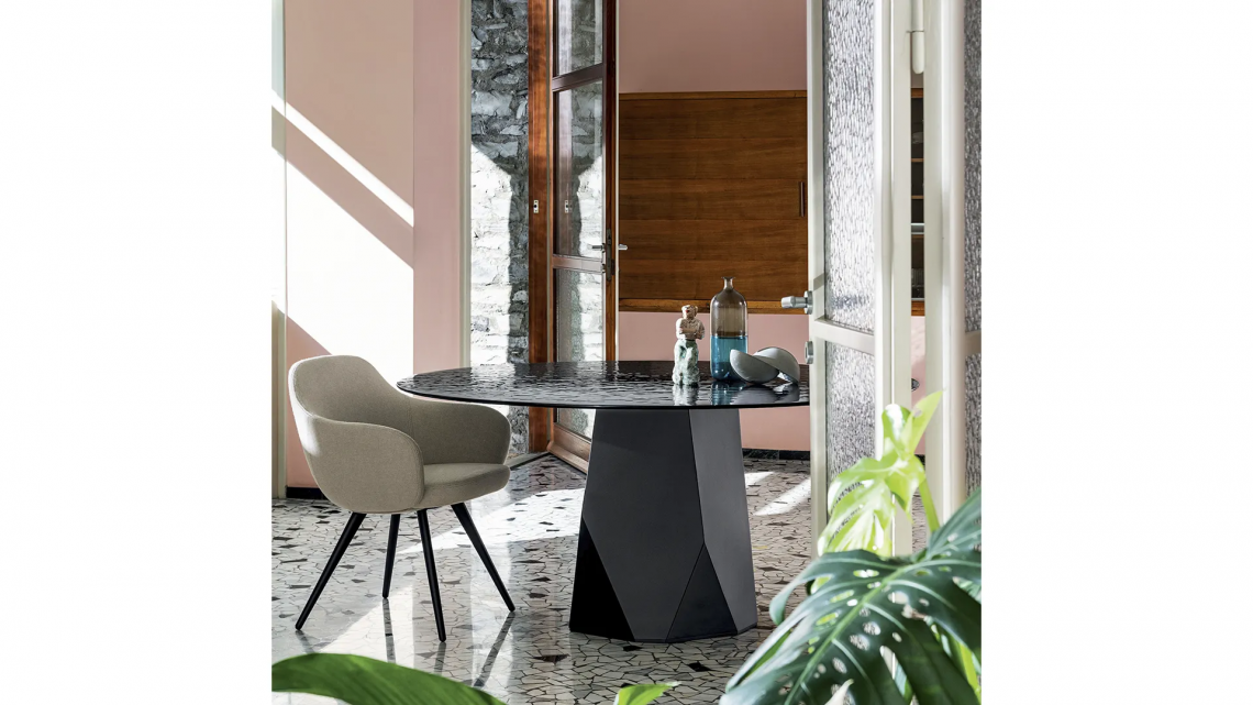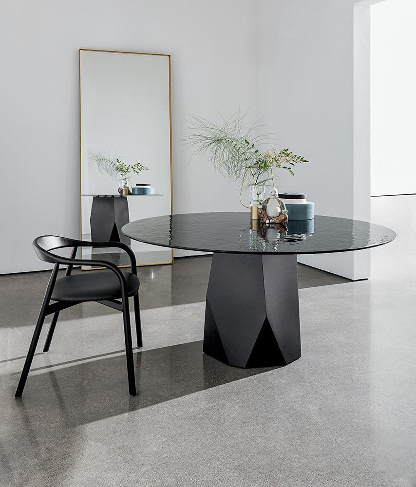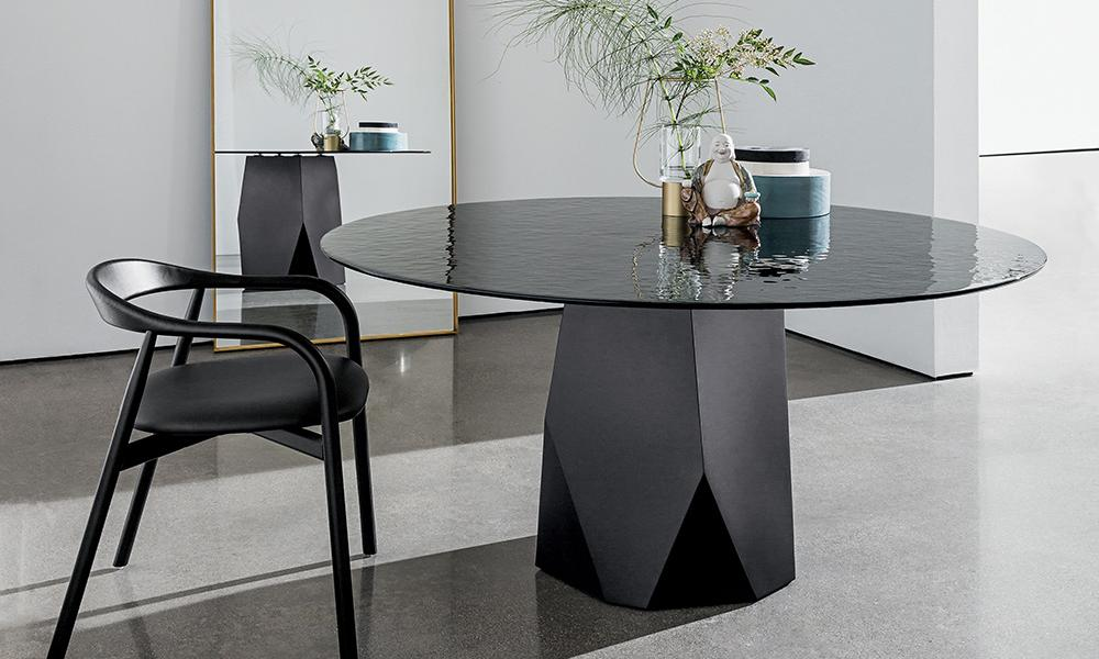 Un nuovo tavolo dove forme e materiali vengono esaltati in un naturale equilibrio di geometrie grazie all’iconica base ispirata alle caratteristiche linee scolpite delle Dolomiti.