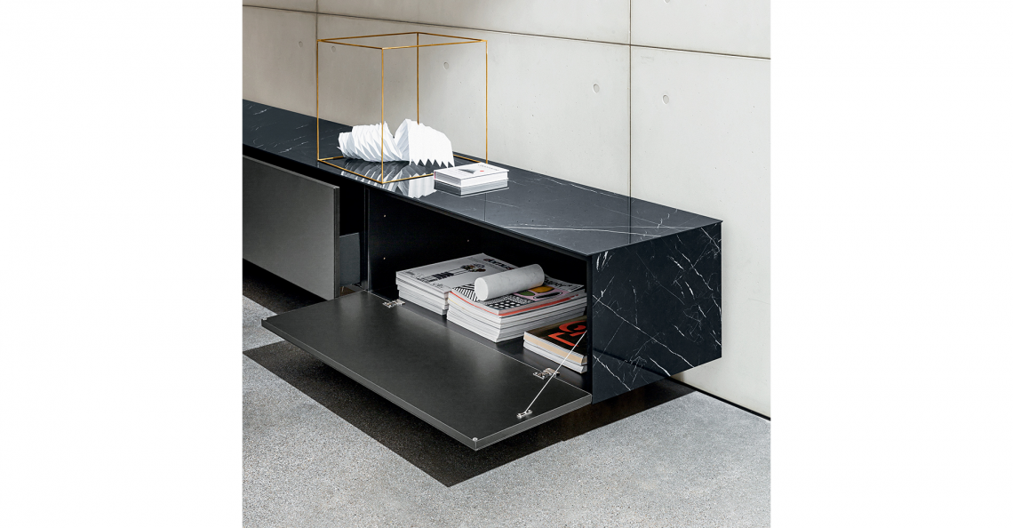 Sistema di madie sospese personalizzabili. Struttura e ante disponibili in specchio o ceramica, varie finiture, con o senza profilo in finitura ottone. Disponibile nelle versioni con o senza led. Telaio di sostegno in metallo; eventuali piedini di supporto inclusi.