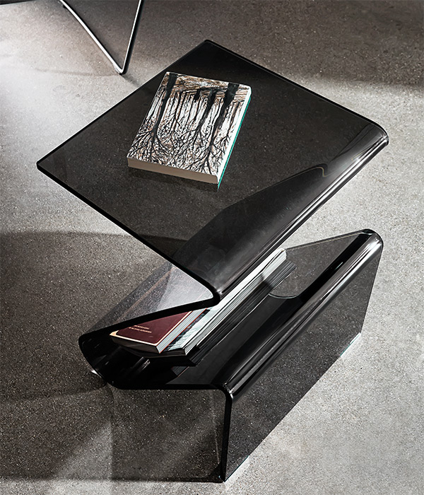 Portariviste in vetro curvo trasparente extrachiaro o fumé.Portariviste in vetro curvo trasparente extrachiaro o fumé.