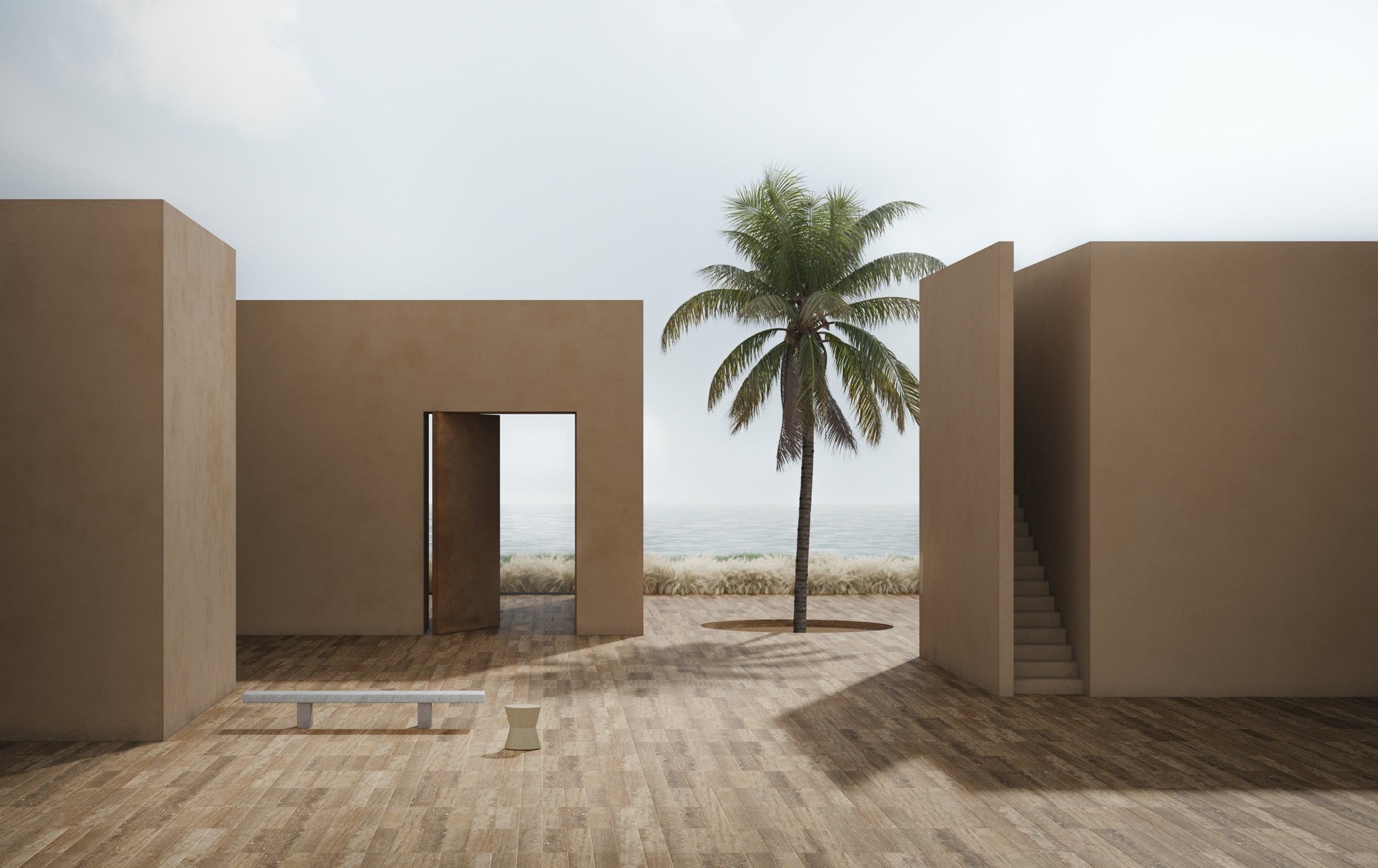 Pairing classic Bianco Carrara marble with the golden hues of Avana sandstone, ‘Span’ is the first collection in the Salvatori home accessory range designed specifically for outdoor use.