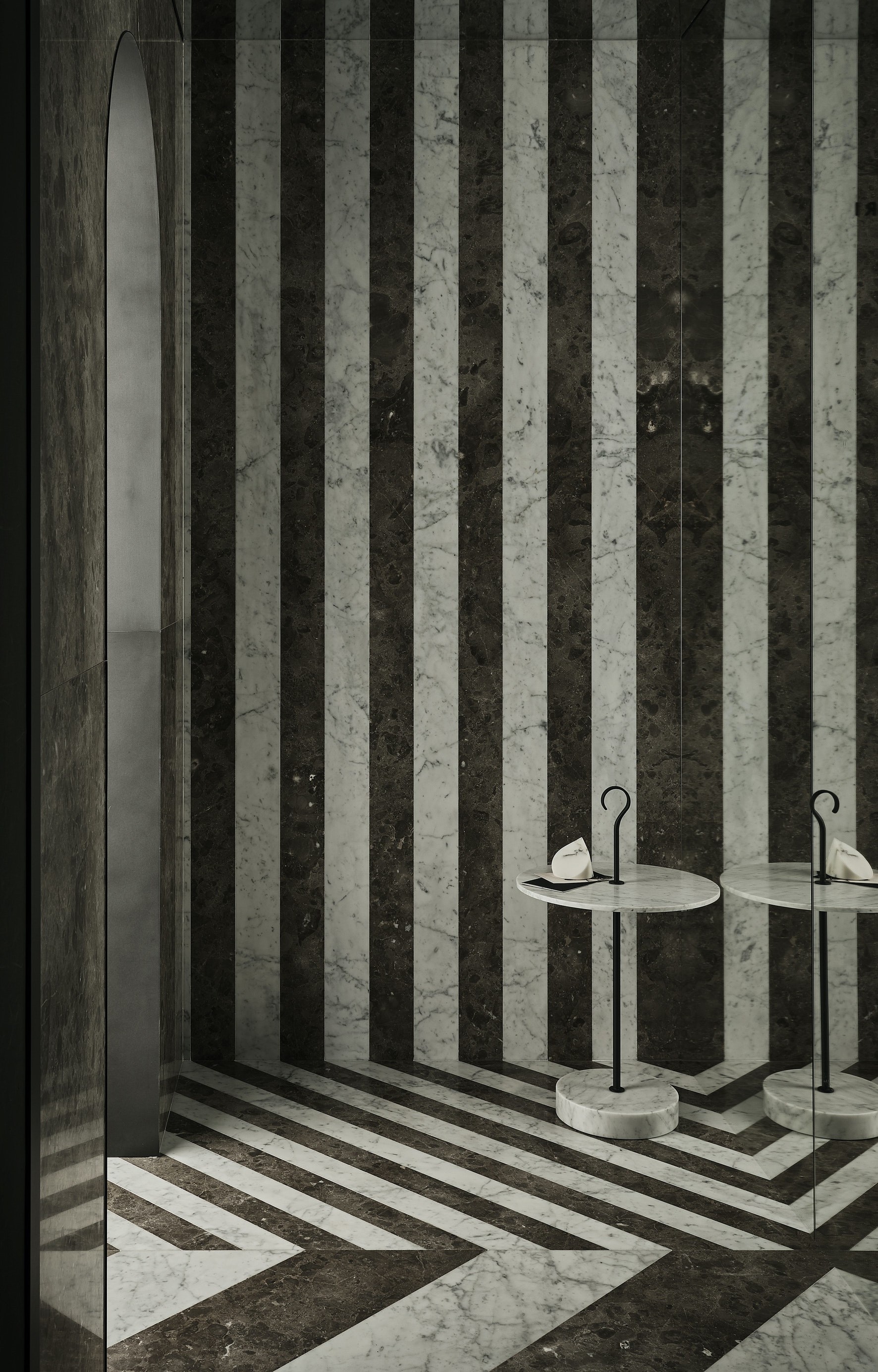 For those wishing to personalise their piece, it is possible to use di?erent materials for the base and top, for example, combining Bianco Carrara and Grigio Versilia or Verde Alpi and Nero Marquinia.