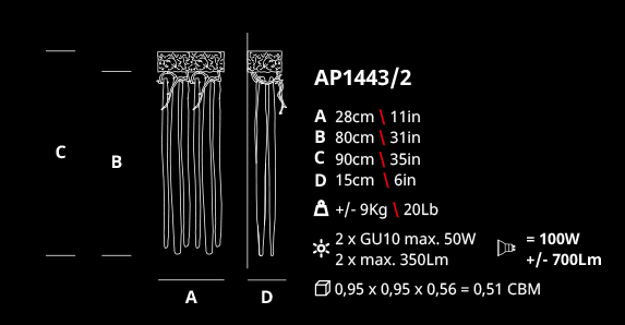 Ideal for: Open spaces and staircases with vertical amplitude, suitable in any interior design concept.
