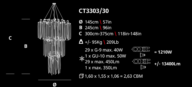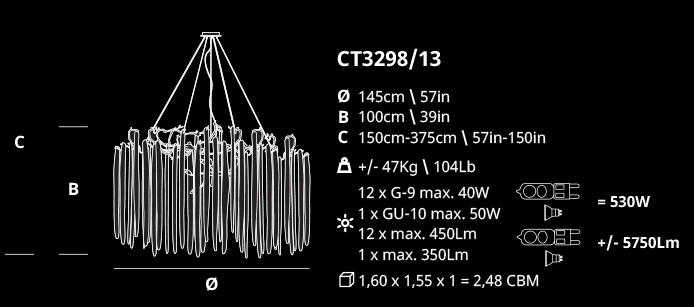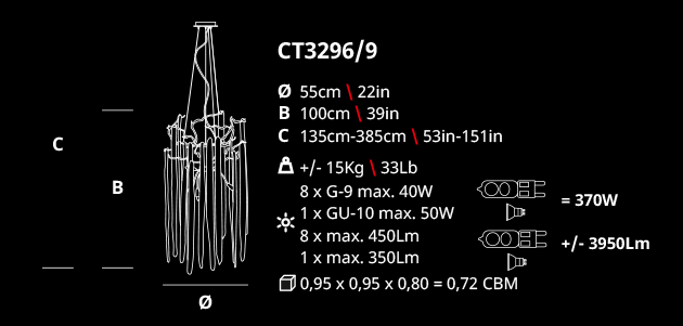 Ideal for: Open spaces and staircases with vertical amplitude, suitable in any interior design concept.