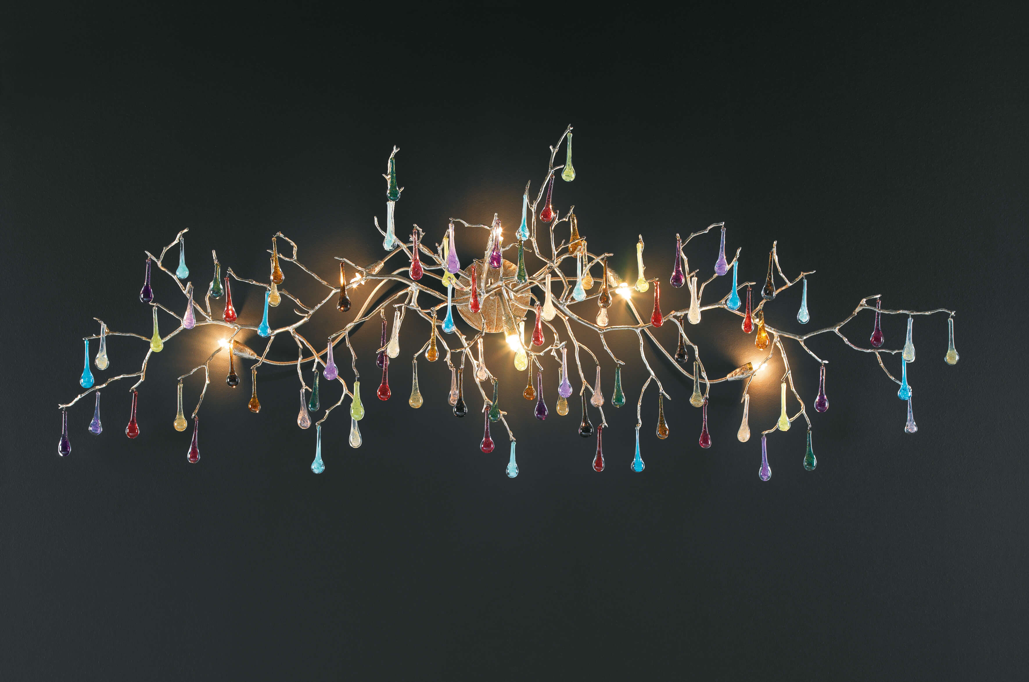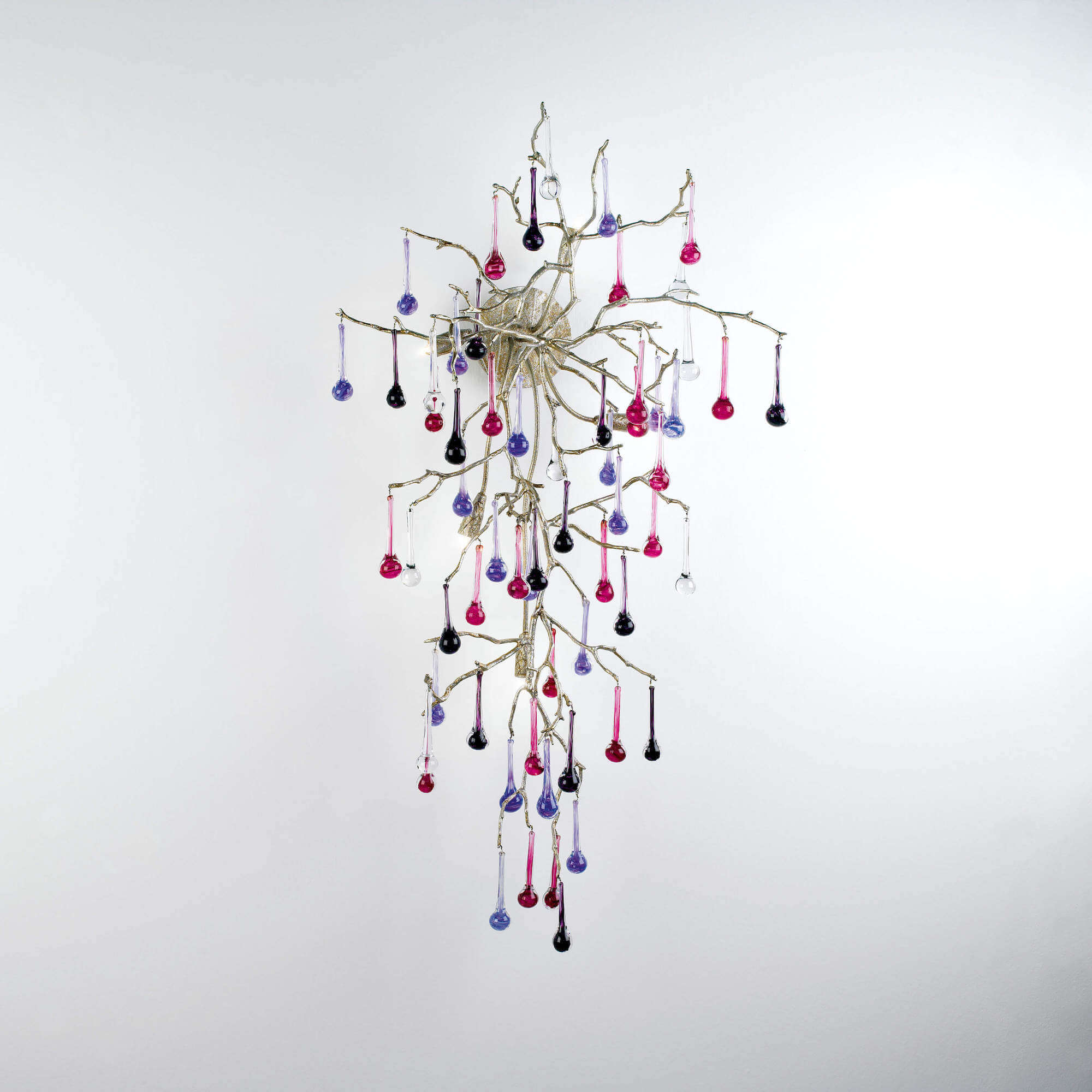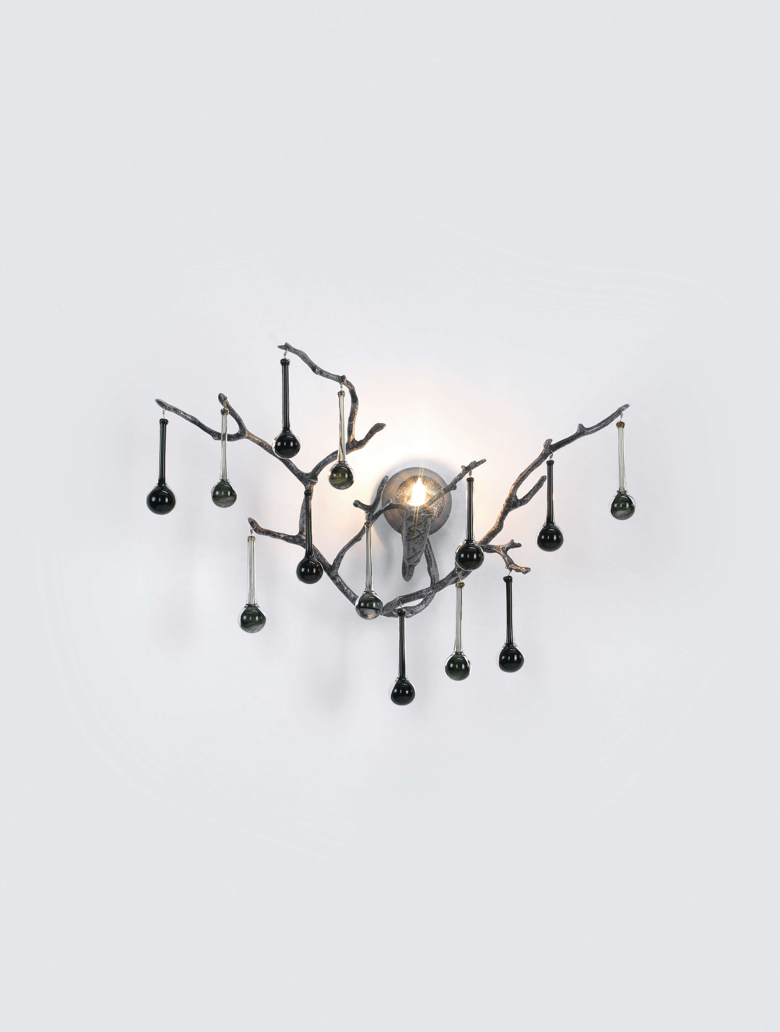 As beautiful and delicate as nature itself, the Bijout carries a romantic and whimsical sense of detail. The gentle glass pieces are designed to contrast directly with the complex and condensed bronze structure, in a combination of light and movement, and a multitude of colours and weights. In order to define a certain refinement to an interior design concept, the Bijout collection guarantees elegant and graceful details for compelling results.