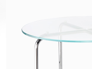 The rediscovery of a versatile classic: on the occasion of the 100 year Bauhaus anniversary, we have re-issued the round side table MR 515 by Ludwig Mies van der Rohe. The original version is available as a re-edition from the Thonet tubular steel furniture catalogue from 1935 with a tubular steel frame and glass tabletop. This table was presumably created around 1928 in the context of the Esters and Lange Houses in Krefeld designed by Mies van der Rohe. With a fresh look at the original, Studio Besau Marguerre designed more interpretations of the MR 515, resulting in adaptations that present sensitive embellishments to this furniture classic’s elegance. It combines modern ideas of use and technical details with a contemporary touch. Marcel Besau’s and Eva Marguerre’s perspective on the table series remains close to the original design, but the details make the difference. Their revisions to the design are both subtle and technical. The central crossing point of the table legs beneath the glass panel is especially elegant.