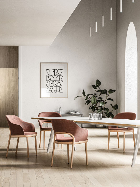 Togetherness – the upholstered chair 520 by Marco Dessí represents contemporary elegance and communicative togetherness