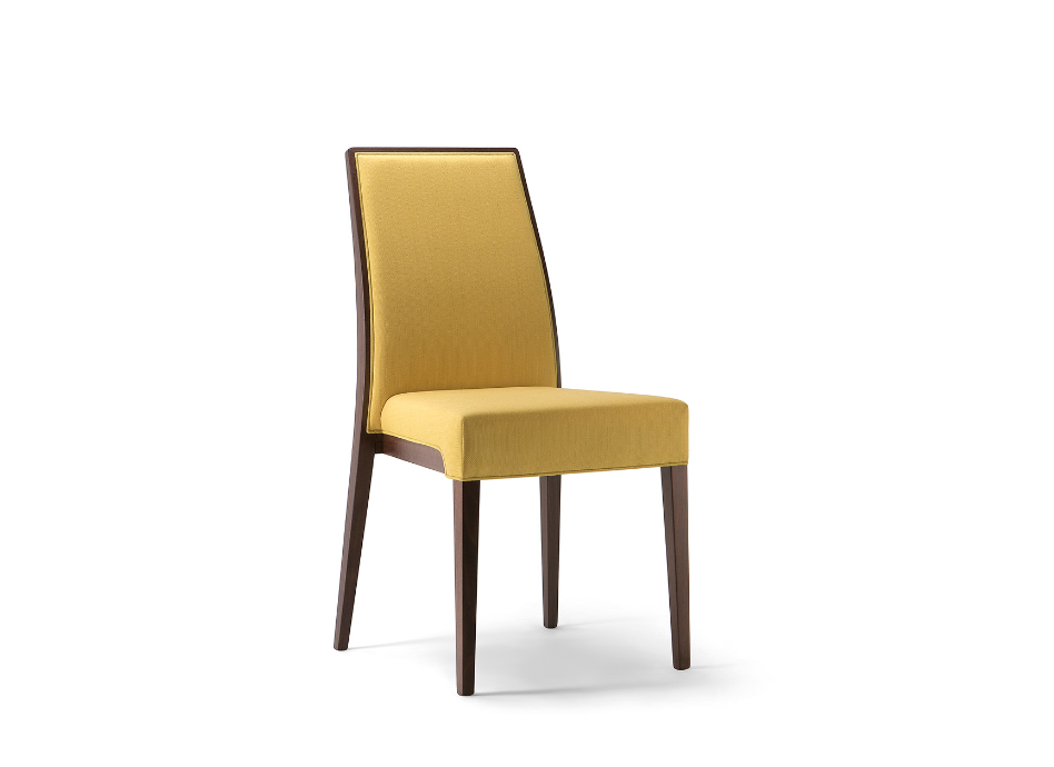 armoniosamente ricurvo e rivestito, caratterizza auesta famiglia di sedute