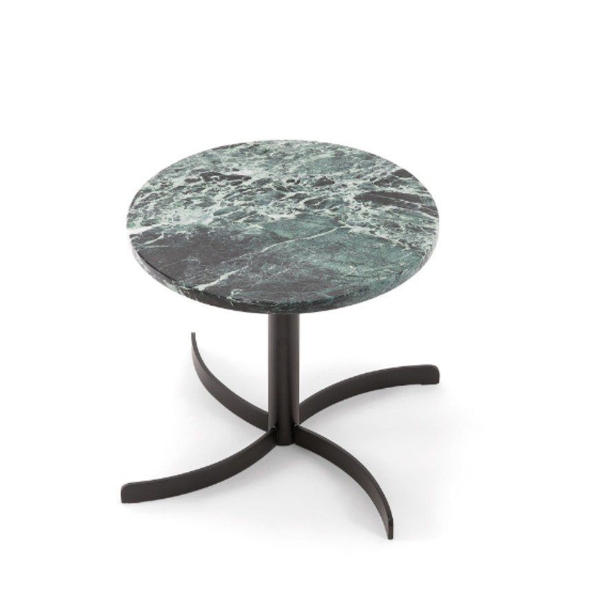 Collezione di tavoli in metallo. abbinati a piani in legno marmo o imbottiti