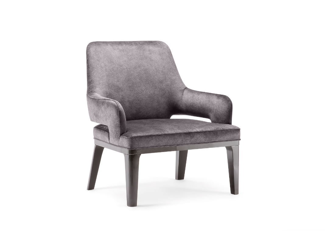 Linterazione tra morbide rotondita e linee decise dona un tocco di modernitae contemporaneita alla collezione.Una delle ultime nate, ma gia molto amata dai nostri clienti.il dettaglio in legno massello di faggio che, avvolge la seduta, dona eleganza eraffinatezza ad ogni ambiente.