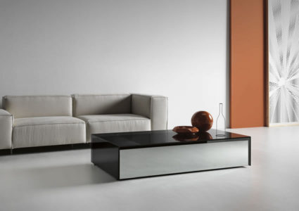 The Gotham table collection, with its simple form, is made of a console, coffee table and side table. The distinguishing mark is the smoked glass used for the external frame of each product.