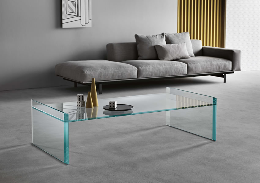 Low table with 15mm top and bevelled edges. Table available in square or rectangular shape.