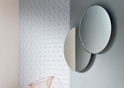 Mirror with fix central part and satellite that turns at 360°. Simple and unexpected.