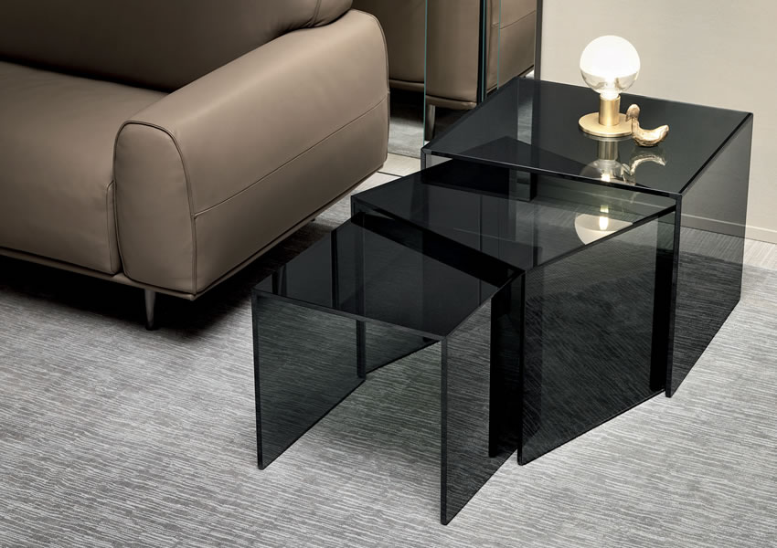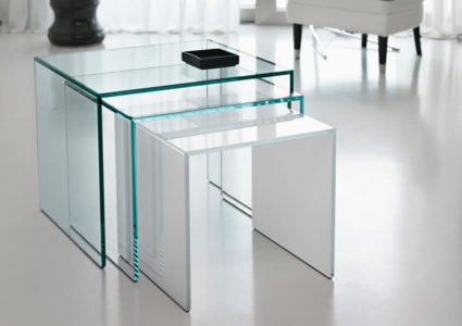 Different sized tables that can be used to form a nest.Available in trasparent, extraclear or white laquered glass.