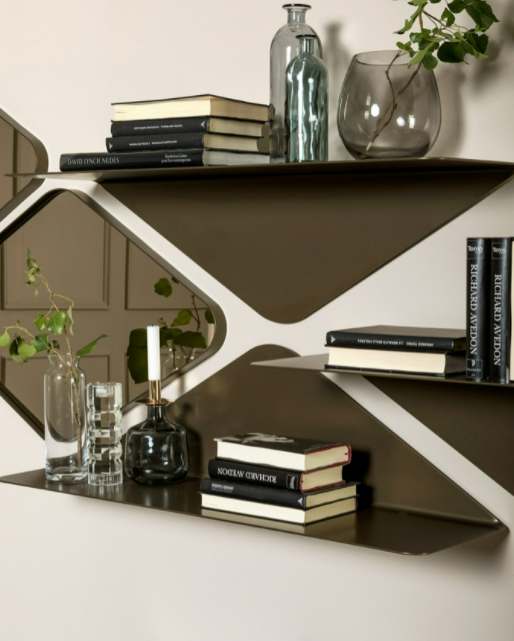 Per creare le composizioni più dinamiche e di gusto, la famiglia Matrix rappresenta il giusto connubio tra design e funzionalità. Mensole in metallo laccato e specchiere romboidali bordate in metallo che si abbinano tra di loro creando disegni personalizzabili.