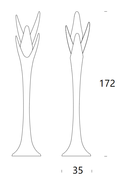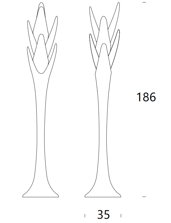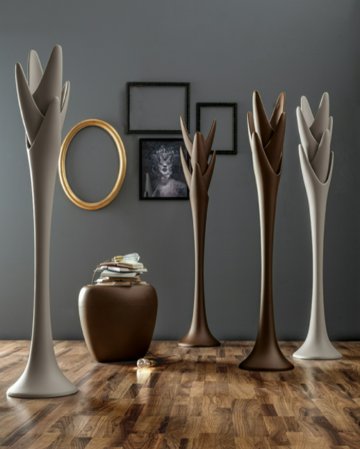 Spiga è un perfetto ed estremo esperimento di design: la naturalezza della spiga di grano incontra la raffinata lavorazione di un materiale plastico. Linee morbide si creano per raggiungere una linea delicata e sviluppata verso l'alto, dove si snodano i petali appendiabiti.