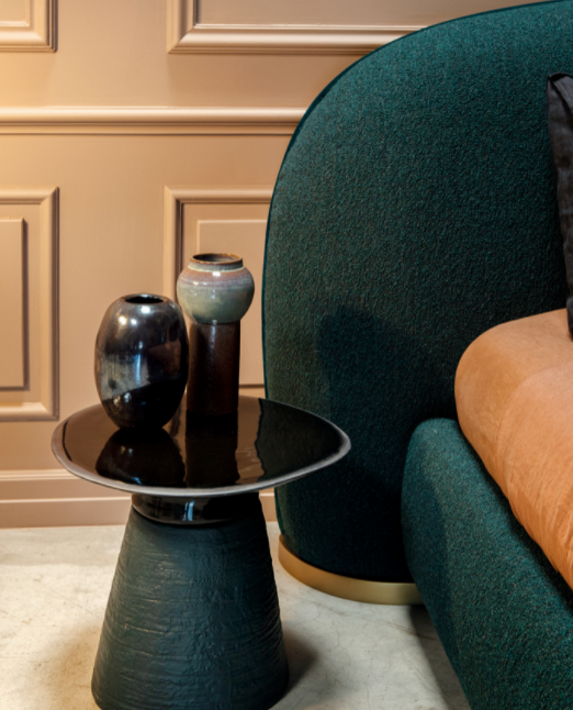 Tavolini interamente realizzati in ceramica, dalla lavorazione artigianale 100% Made in Italy. Due semplici forme, un cerchio e un cono, accostate fra loro, a richiamare quest’albero simbolico, padrone del paesaggio. La solida base che li caratterizza può essere personalizzata in laccato bianco perla, grigio quarzo e blu oceano, con top nero rame perla.