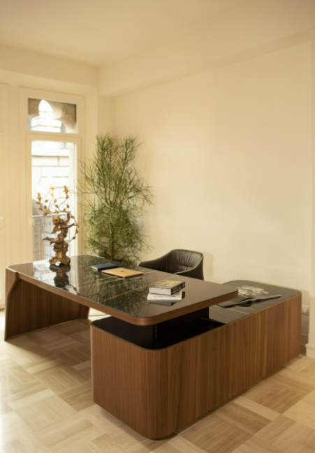 Estetica e funzionalità si fondono in Ermes, la nuova scrivania direzionale in legno termocurvato firmata dall’arch. Angelo Tomaiuolo, che con il suo design invita alla condivisione, offrendo un confortevole e ampio piano di appoggio, impreziosito dal top in porcellana.