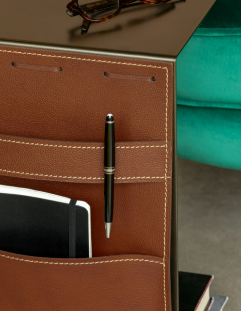 Opus è il servetto multifunzione dal design distintivo, che fonde eleganza funzionale e stile. Realizzato con struttura in metallo verniciato con finitura bronzo, Opus è caratterizzato da un’esclusiva tasca laterale in cuoio cognac.