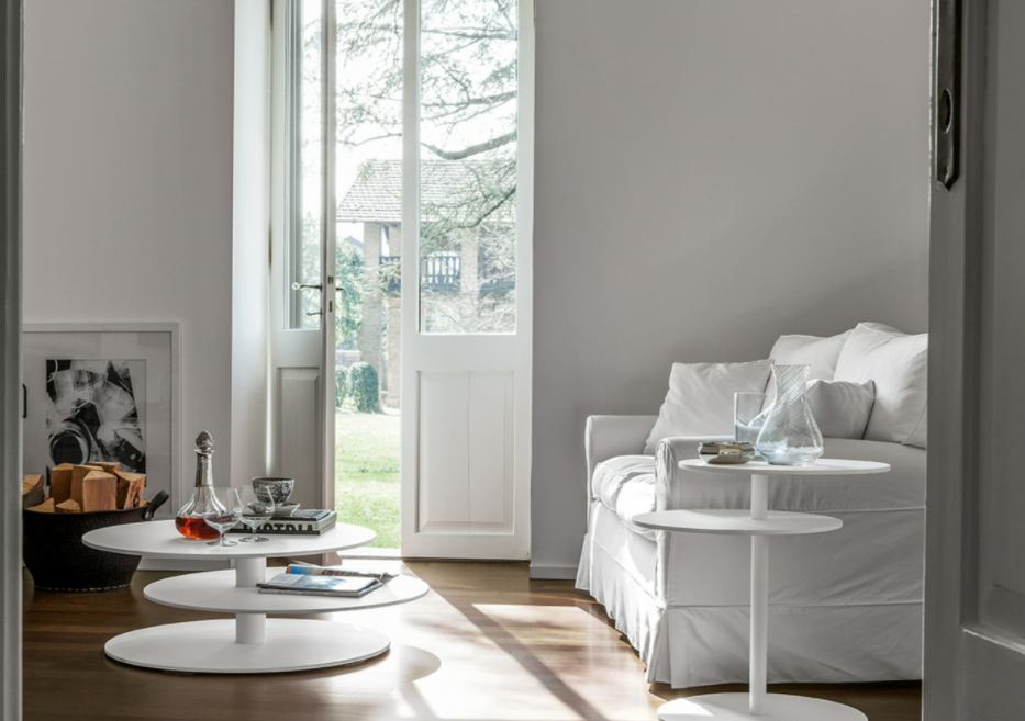 Due piani che si muovono come anelli attorno ad un'orbita, ad altezze diverse e leggermente spaiati, per creare un effetto di movimento e leggerezza.