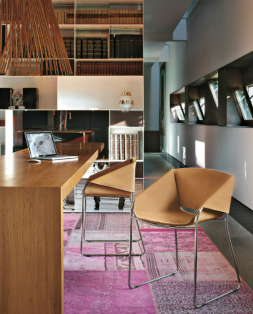 Seduta con struttura tubulare in metallo cromato, che si arricchisce di una seduta in cuoio dal taglio moderno e professionale.V Le cuciture e i bordi in tinta, o a contrasto, permettono di giocare con effetti di maggiore o minore dinamicità.