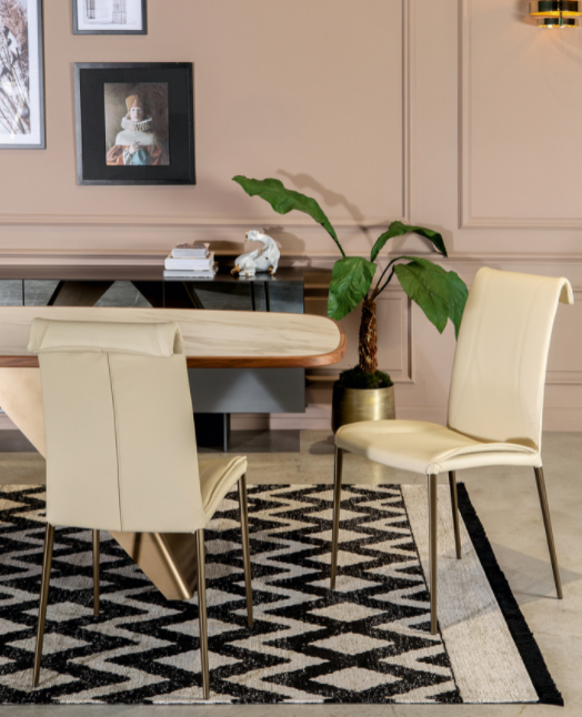 La sapiente lavorazione della sedia Sofia regala una sensazione di armonica bellezza, impreziosita da dettagli sofisticati: dalla particolarità dello schienale che termina con una curvatura a ricciolo, alle cuciture a rilievo che ne denotano la sartorialità. La seduta generosa è arricchita da un materassino che la rende particolarmente confortevole e accogliente.