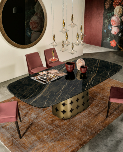 Pois rappresenta a pieno l’ispirazione naturale che caratterizza la collezione Jungle di Tonin Casa: luci ed ombre giocano con la base, allo stesso modo in cui i raggi del sole penetrano le piante del sottobosco. Le colorazioni della base – bianco, grigio carbone ed oro opaco – aumentano o smussano questo effetto luminoso, pensato per accordarsi alla grande varietà di finiture disponibili per il piano.