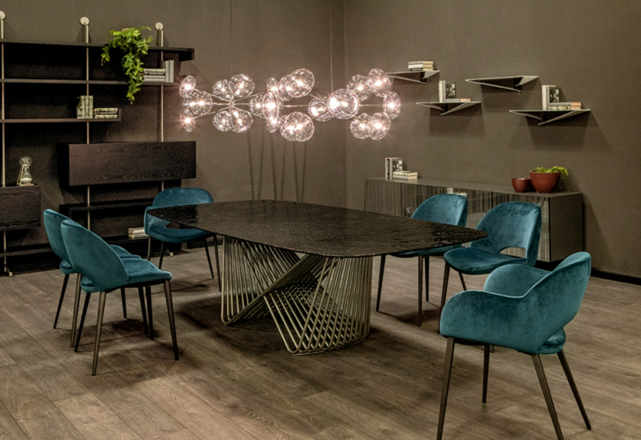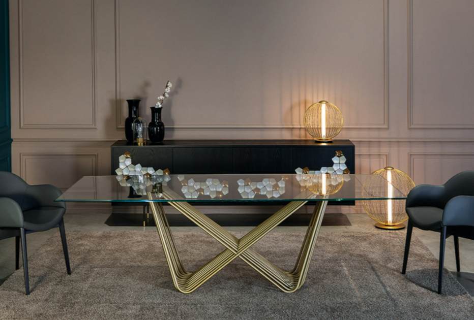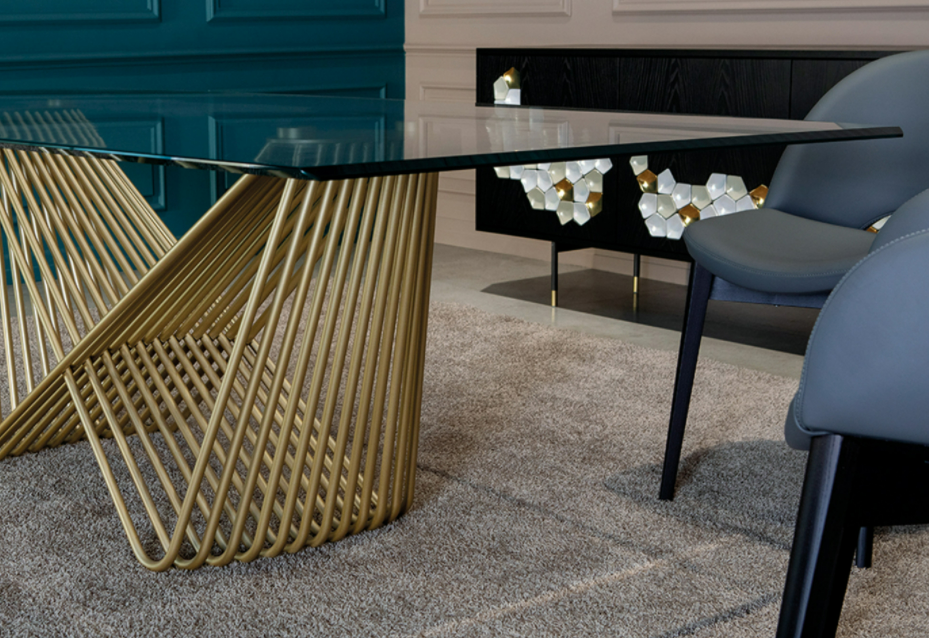 Leggero, prezioso, elegante: è Tenso, tavolo dal design iconico, che sembra scolpito con la luce e la materia. La struttura è caratterizzata da un raffinato intreccio di tubi in metallo verniciato che si intersecano e creano un design