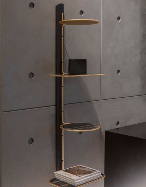Il design dinamico di Icon rende versatile la sua funzione: la leggera struttura a stelo in legno massello, impreziosita da un filo di metallo in finitura oro, sostiene i ripiani in gres porcellanato, per comporre uno stile unico e ricercato.