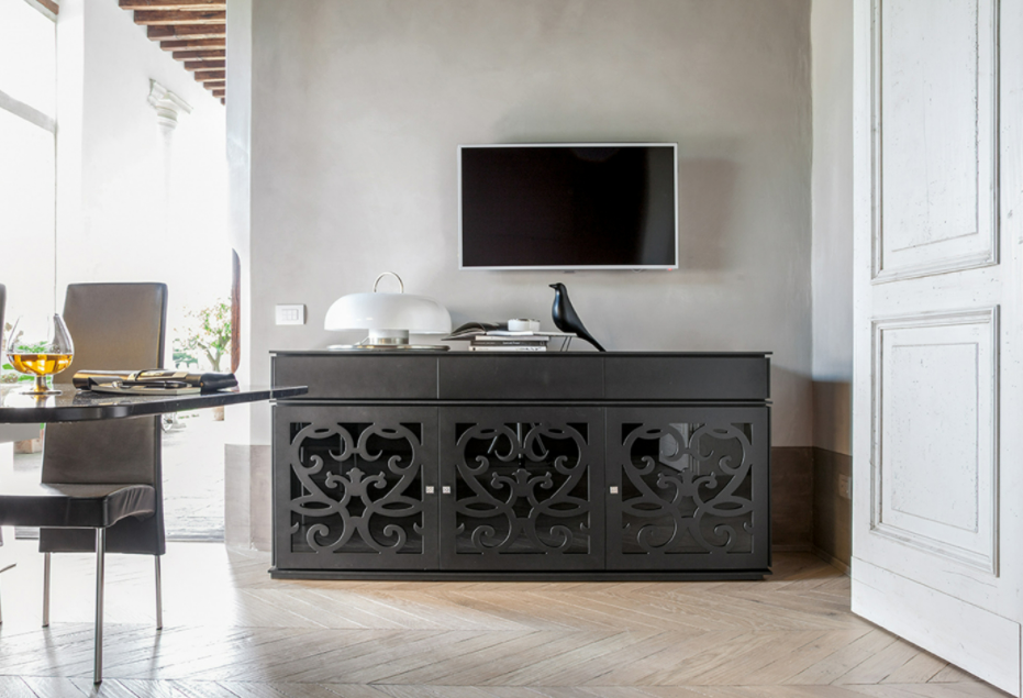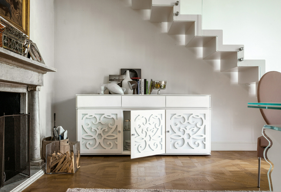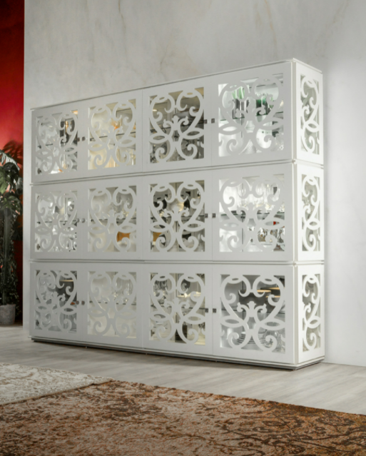 Cangiante e luminosa come la città cui si ispira, Paris è un programma che svela il lusso discreto di vetro e legno, in una moltitudine di forme che creano madie, porta-TV, vetrine, pensili e mensole, nella finitura che più si adatta al proprio living.