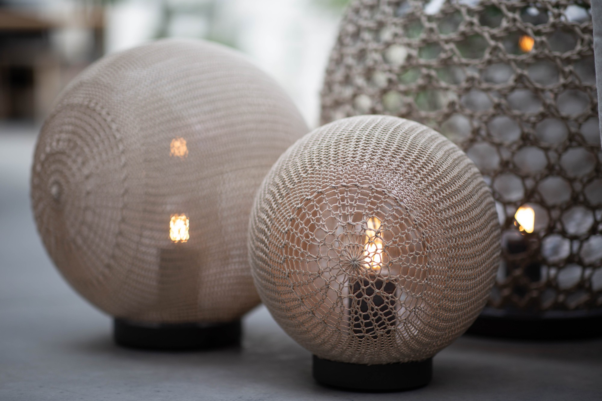 Monsieur Tricot is a collection of knitted and hand crocheted lighting elements that will turn your outdoor space and garden into a magical place. The hanging and floor lamps, designed by Belgian designer Ilia Eckhardt, combine traditional techniques with high-performing materials and modern technology. Ilia Eckardt grew up immersed in the Belgian fashion scene alongside his mother Hilde Frunt, who knitted prototypes for Belgian fashion designers such as Raf Simons and Dries van Noten. Fascinated by their world, he began experimenting and created his own outdoor lighting collection which he composed as a family. Meet the handsome Monsieur Lebonnet, the graceful Madame Latoque and the chic Madame Cachet. The Monsieur Tricot outdoor lighting collection is CE certified, meaning the lights can be ordered in the 28 member states of the EU, the EFTA countries (Iceland, Norway and Liechtenstein), Switzerland, Macedonia, Serbia and Montenegro. For further technical information, please check the collection sheet and user manual.