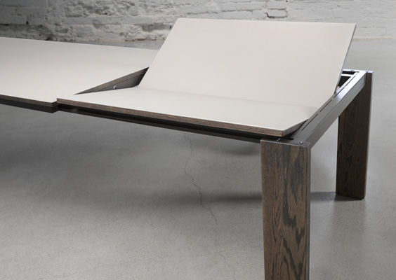Table base is a combination of metal and solid wood (oak or birch).