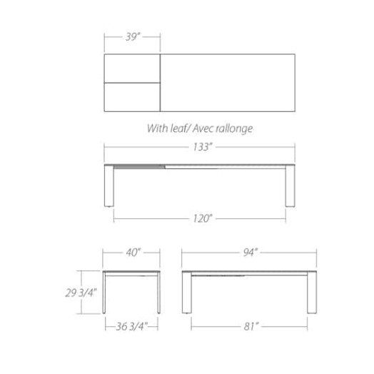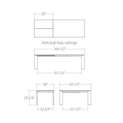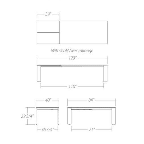 Solid wood legs: 1 1/2” x 6 1/4”.