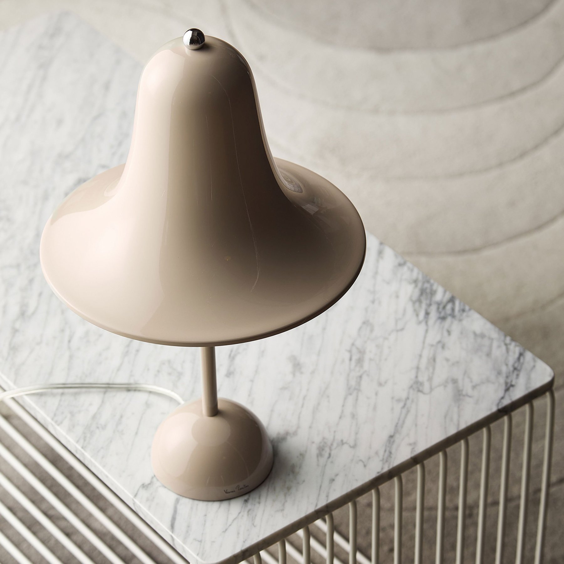 The elegant Pantop line was designed by Verner Panton in 1980, and has for a long time been a staple of the Verpan collection. Pantop is characterized by a bell-like, widely flaring shade which is mounted with the aperture facing down.