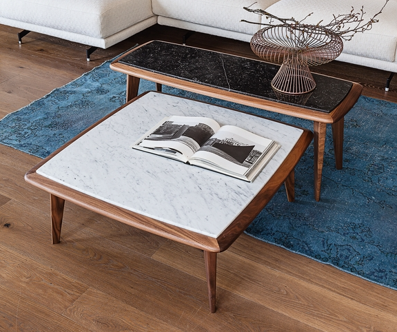 The 9500 080, 082, 084, 086, 088 coffee tables' design emphasizes their light and functional lines as well as the elegant look of their marble or mirror tops. These coffee tables are the perfect match with every Vibieffe sofa and armchair.