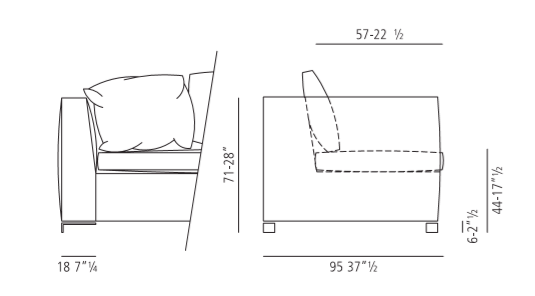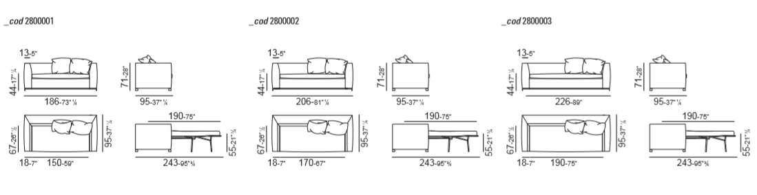 The main features of Vibieffe 2800 Bel Air are the contemporary, light and basic lines of its design, the versatile combination with a side chaise-longue and its functional use as a storage container, as well as the possibilty to choose its seats and bed in three different sizes.
