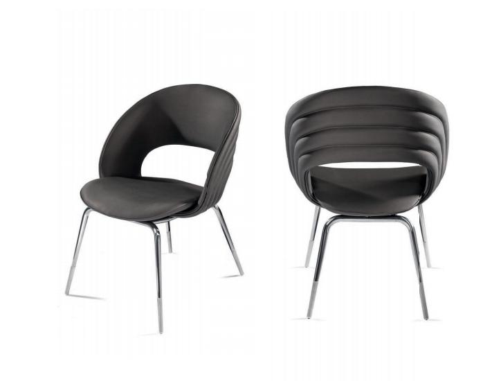 Sedia in legno curvato, con gambe in tubo conificato e piedi torniti. Tappezzeria trapuntata con rivestimento in pelle o tessuto.