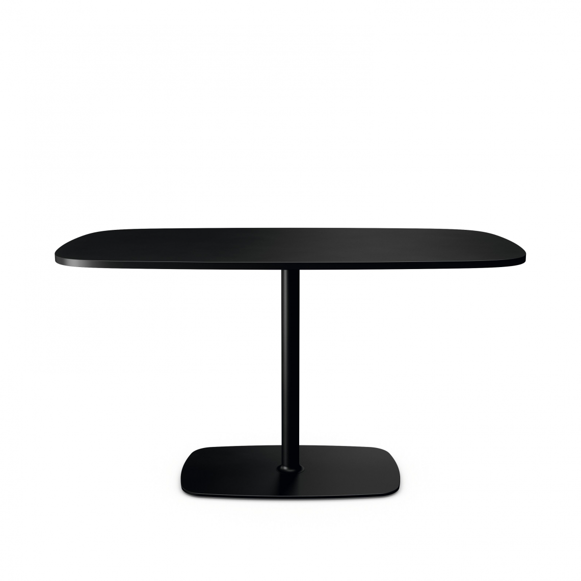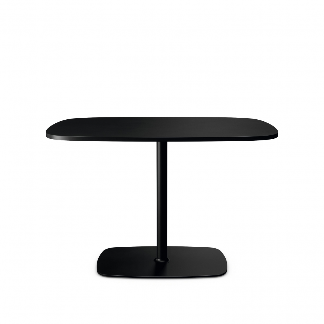 Equally suited to dining room, office or restaurant: here you can take a seat without any chance of hitting the edges. The medium height can be comfortably pushed up to a sofa – so you can work in a relaxed atmosphere or enjoy a small snack. The footplate elegantly mirrors the form of the tabletop.