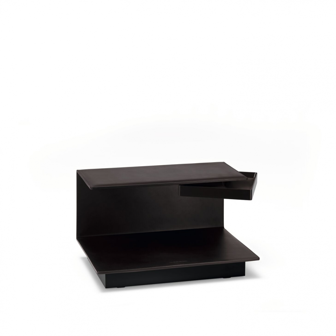 Nighttime storage for book and personal items near the bed. Functional and elegant, the swivel box guards personal treasures you like to keep hidden. This side table completes the comprehensive Yuuto sleep system comprising bed, banquette, and console.