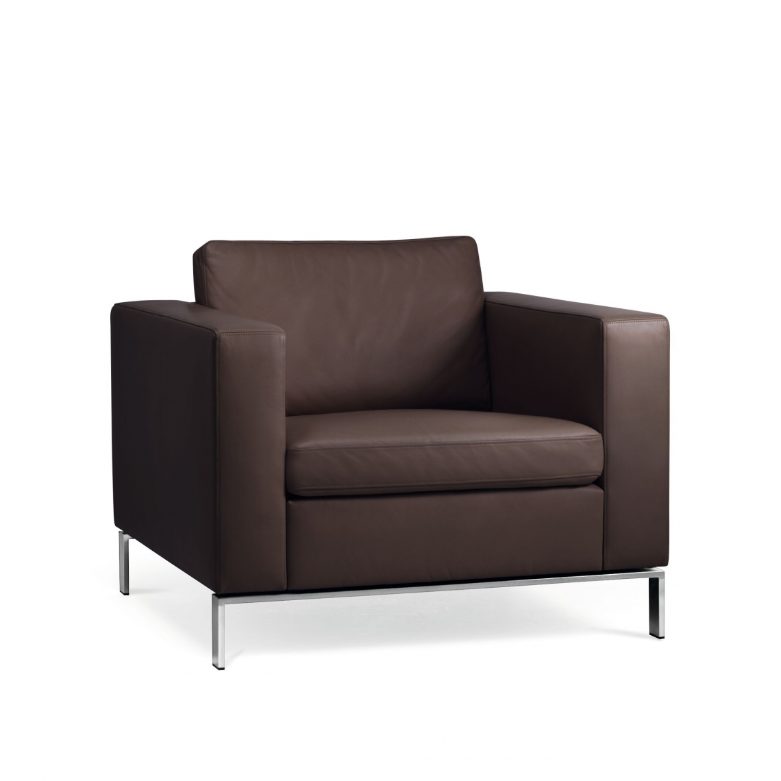 The floating base, back, and armrests of this easy chair are in perfect proportion. Precision and concision distinguish the Foster 503 range of armchair and sofas for prestigious spaces and retreats. Designed to accompany them is the Foster 500 Side Table.