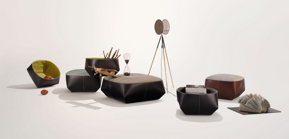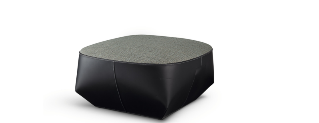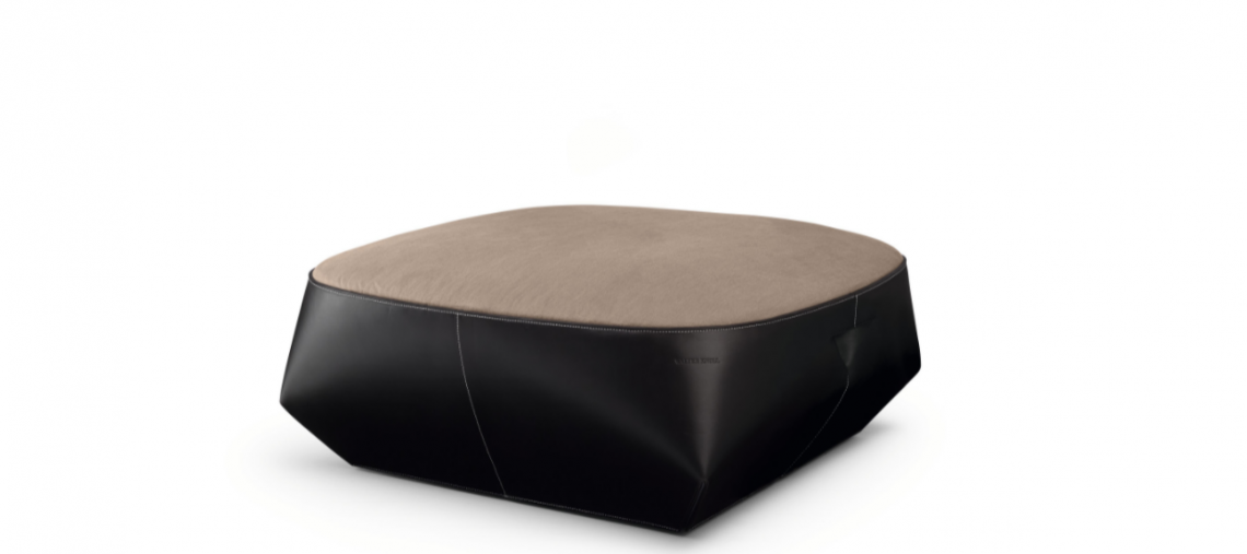 In front of a sofa or the corresponding Isanka Armchair, the upholstered seat offers indispensable comfort. Fine saddle leather and elegant fabric emphasize the special character of this luxury piece, which creates a cozy feeling in very different living spaces.