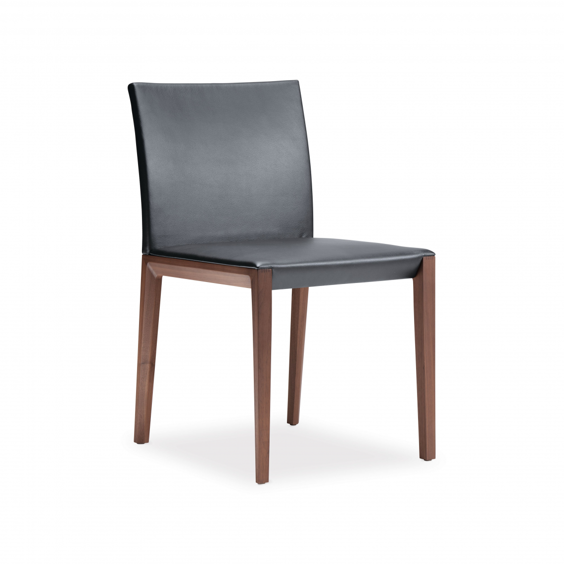The soft leather of this chair appeals to those who sit in it, while solid wood ensures stability. The elastically springy back and the pocket spring cores in the seat offer the seating comfort of an armchair. Designed for extended periods seated at dining or conference tables.