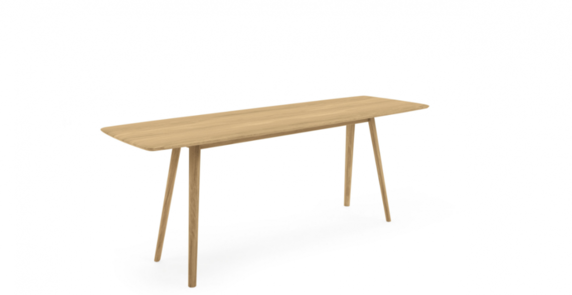The high table for conversations at eye level. In executive offices, creative spaces, bistros or kitchens, Deen High Standing Table becomes an ideal meeting place. The slim, oval table top with soft edges creates a feeling of closeness and trust, and the design stands freely in the room on slim legs.
