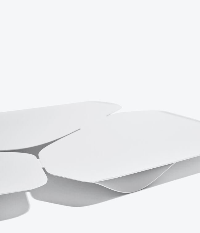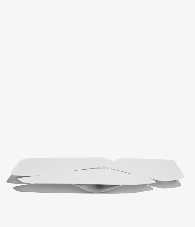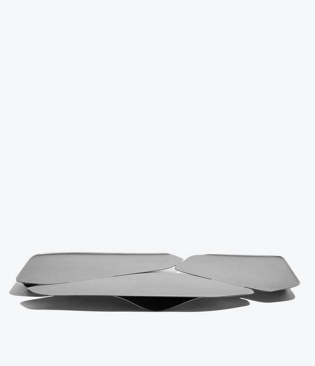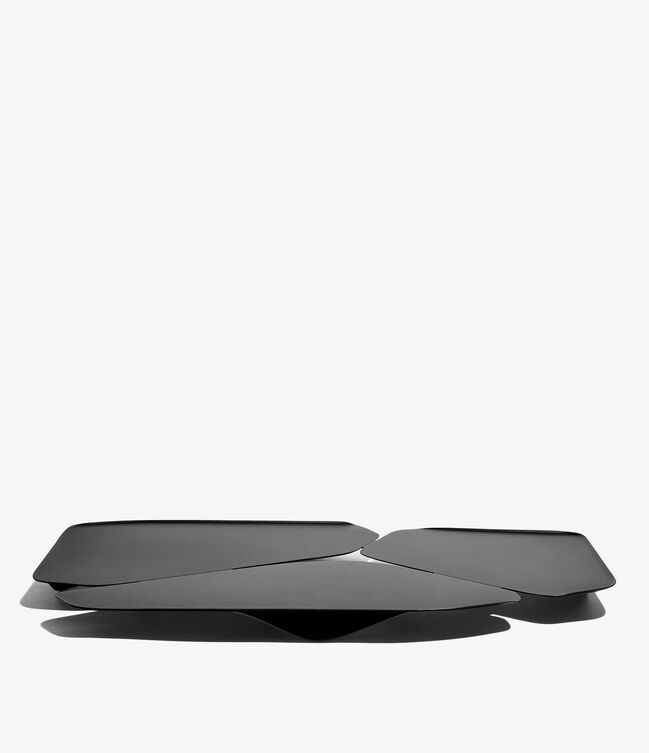 HEW Tray - powder-coated stainless steel - the underside peels away from the surface - creating three resting points with pockets for hand-carrying.