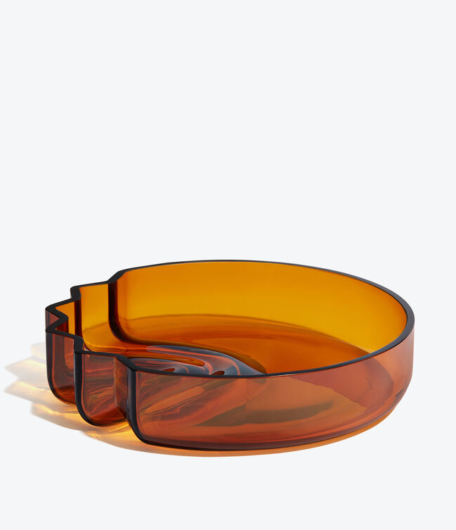 PULSE Platter - polished blown glass - undulating in a horizontal gradient along a portion of the circumference.